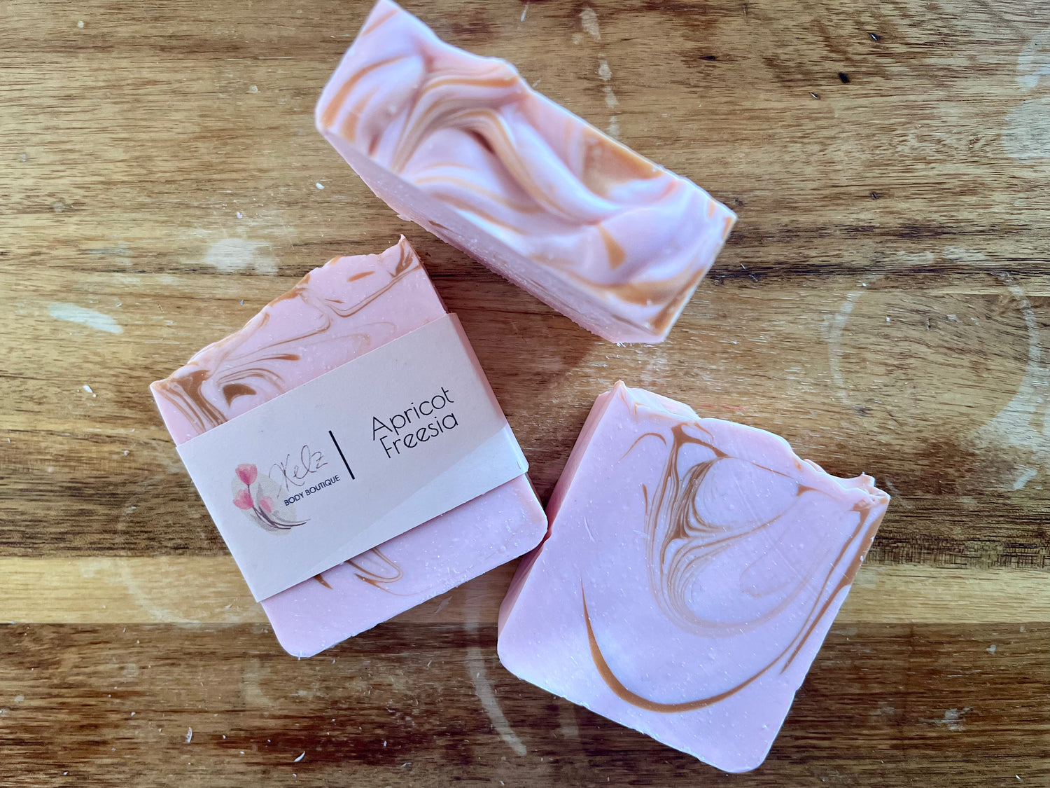 Say hello to sweetness with sophistication. Our Apricot Freesia Soap features a soft pale pink base with a stunning gold swirl, making each bar feel like a little piece of luxury.