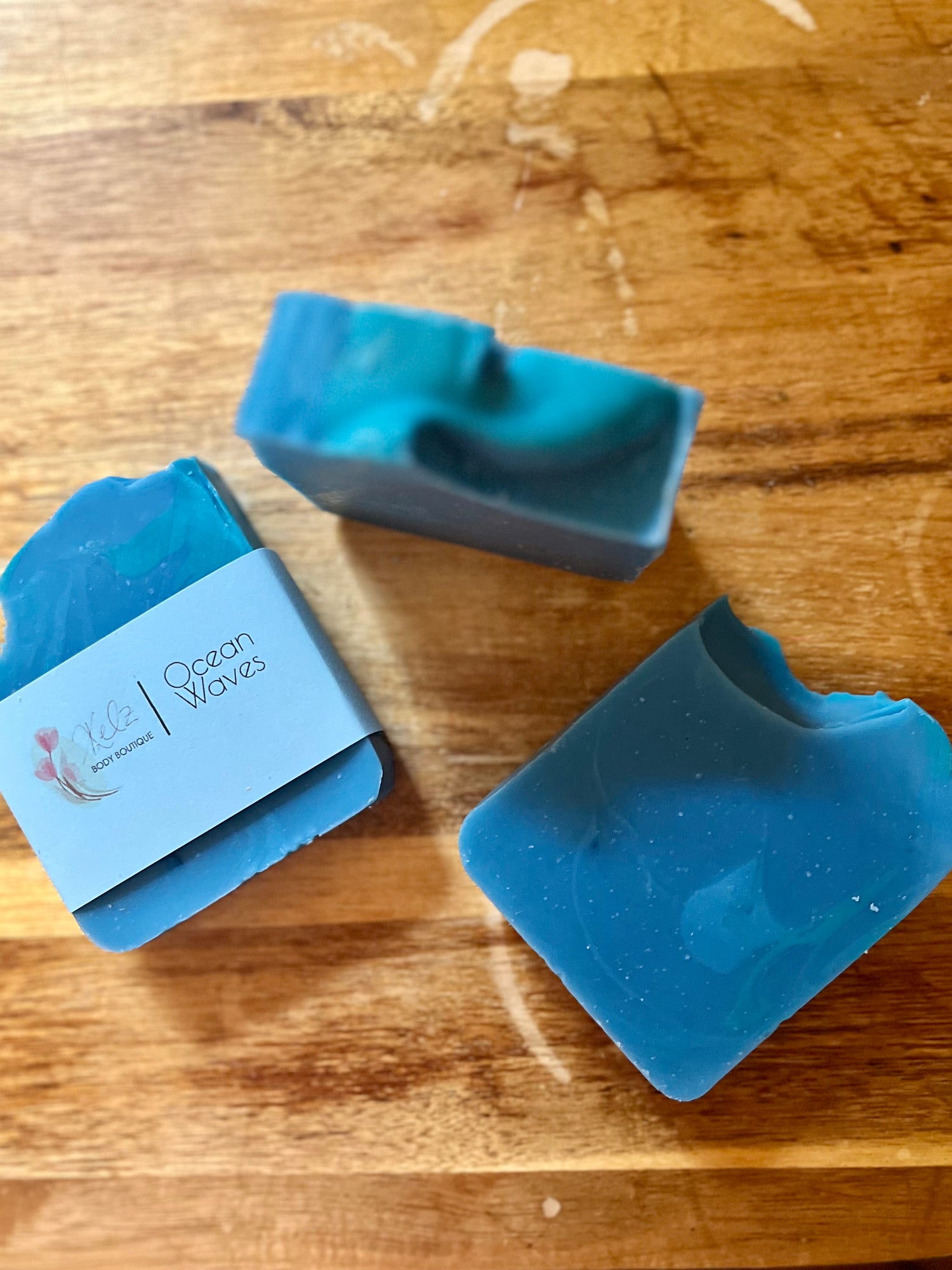 Immerse yourself in coastal calm with our Ocean Waves Soap, featuring a deep blue base with soft, lighter blue swirls that echo the movement of rolling tides. Scented with our Beach House fragrance, this bar transports you straight to a serene seaside escape—think deck chairs, clear blue waters, and cloudless skies.